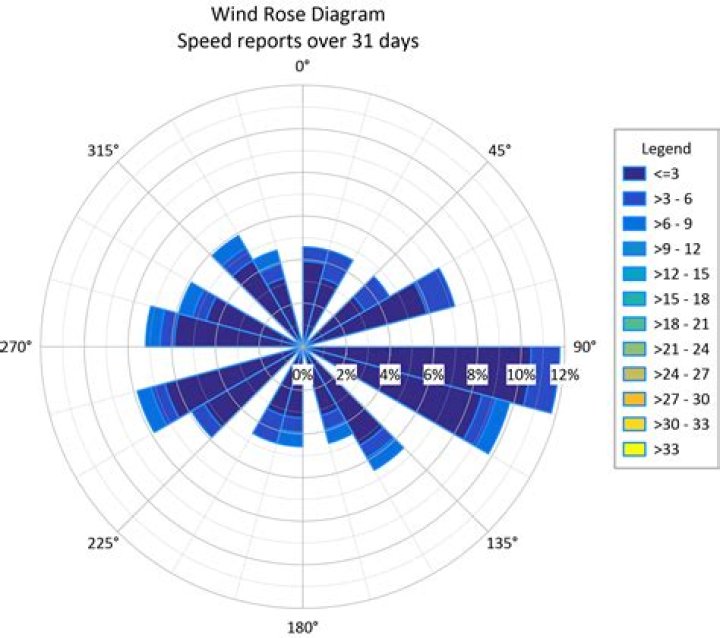 To create a wind rose, average wind direction and wind speed values are logged at a site, at short intervals, over a period of time, e.g. 1 week, 1 month, or longer. The collected wind data is then sorted by wind direction so that the percentage of time that the wind was blowing from each direction can be determined.